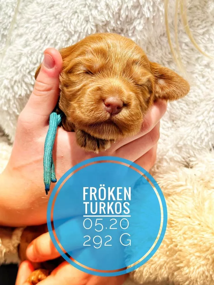 Holly är resultatet av ett avelssamarbete mellan Enhagen Labradoodle och Inkas Australian Labradoodle. Målet var att kombinera vår fina hane Douglas (son till vår Bonnie) med en tik utanför våra egna linjer för att bredda den genetiska variationen – och valet föll på Journey Inka, en fantastisk tik som flyttat hela vägen från Australien.